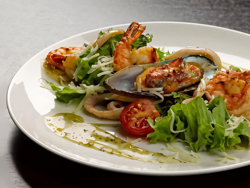 Теплый салат с морепродуктами